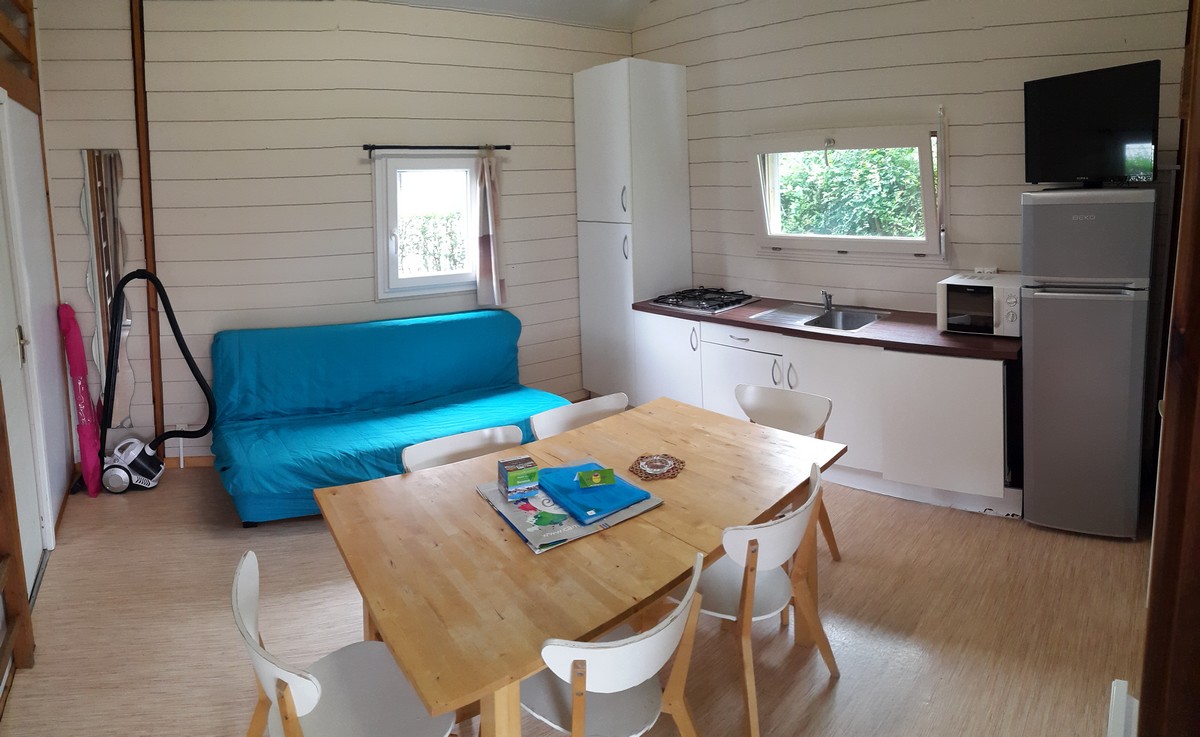 1 room 1 bed 2 pers (140 x 190), 1 room 2 beds (70 x 190), sofa bed 2 pers (140 x 190) in living room, dining area, kitchen 4 gas hobs, fridge with freezer, dishwasher, shower, sink, separate toilet, television, semi-covered terrace, garden furniture with parasol, 2 deck chairs, plancha, private spa.