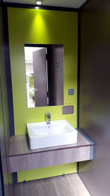 Ce sanitaire dispose également d’un espace vaisselle couvert ainsi que d’une laverie.